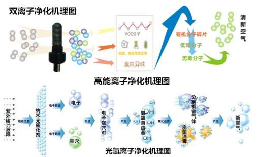 高能离子空气净化系统是国外的高新技术,它能有效地清除空气中的细菌、可吸入颗粒物、硫化合物等有害物质。其工作原理是置于设备内的离子发生装置发射出高能正、负离子,它可以与空气当中的有机挥发性气体分子(VOC)接触,打开VOC分子化学键,分解成二氧化碳和水;对硫化氢、氨同样具有分解作用;离子发生装置发射离子与空气中尘埃粒子及固体颗粒碰撞,使颗粒荷电产生聚合作用,形成较大颗粒靠自身重力沉降下来,达到净化目。发射离子还可以与室内静电、异味等相互发生作用,同时有效地破坏空气中细菌生存的环境,降低室内细菌浓度,并将其*消除。