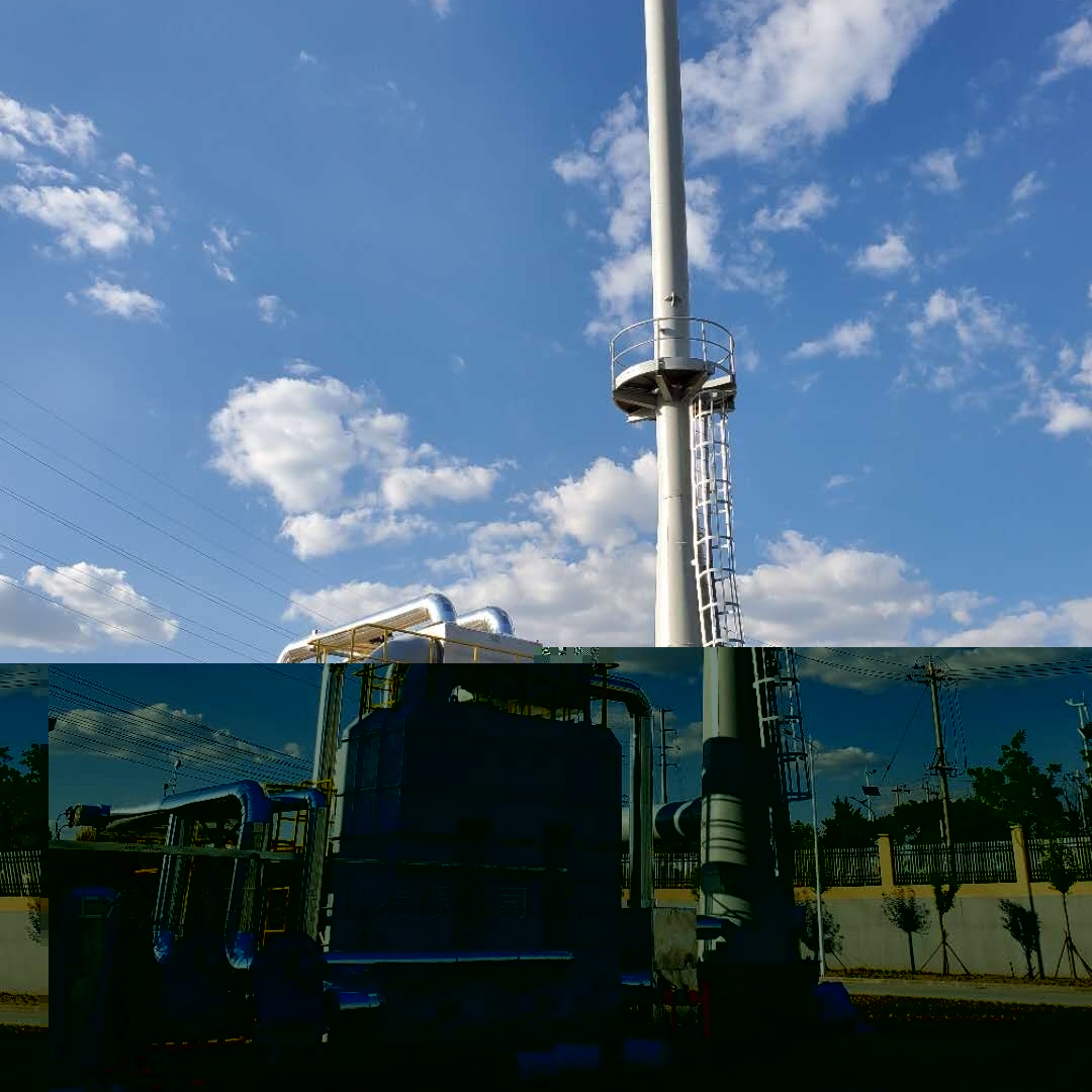 废气离开蓄热室后以较高的温度进入氧化室。在氧化室中由VOCs氧化升温或燃烧器加热升温***化温度820℃,使其中的VOCs成分分解成二氧化碳和水。
